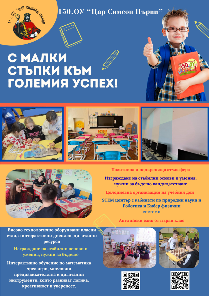 В първия ден на пролетта 150.ОУ „Цар Симеон Първи“ отвори вратите си за всички, които искат да се докоснат до един свят, изграден с грижа, знание, вдъхновение и любов – свят на учене, творчество, приятелство и мечти.