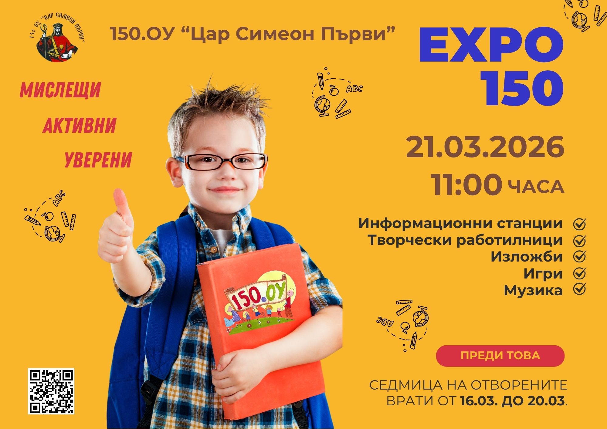 След една вдъхновяваща Седмица на отворените врати, изпълнена с открити уроци, усмивки и споделени моменти, днес поставихме нейния финал с EXPO 150 – изложение на идеи, проекти, игри и най-вече – на таланта и труда на нашите ученици.